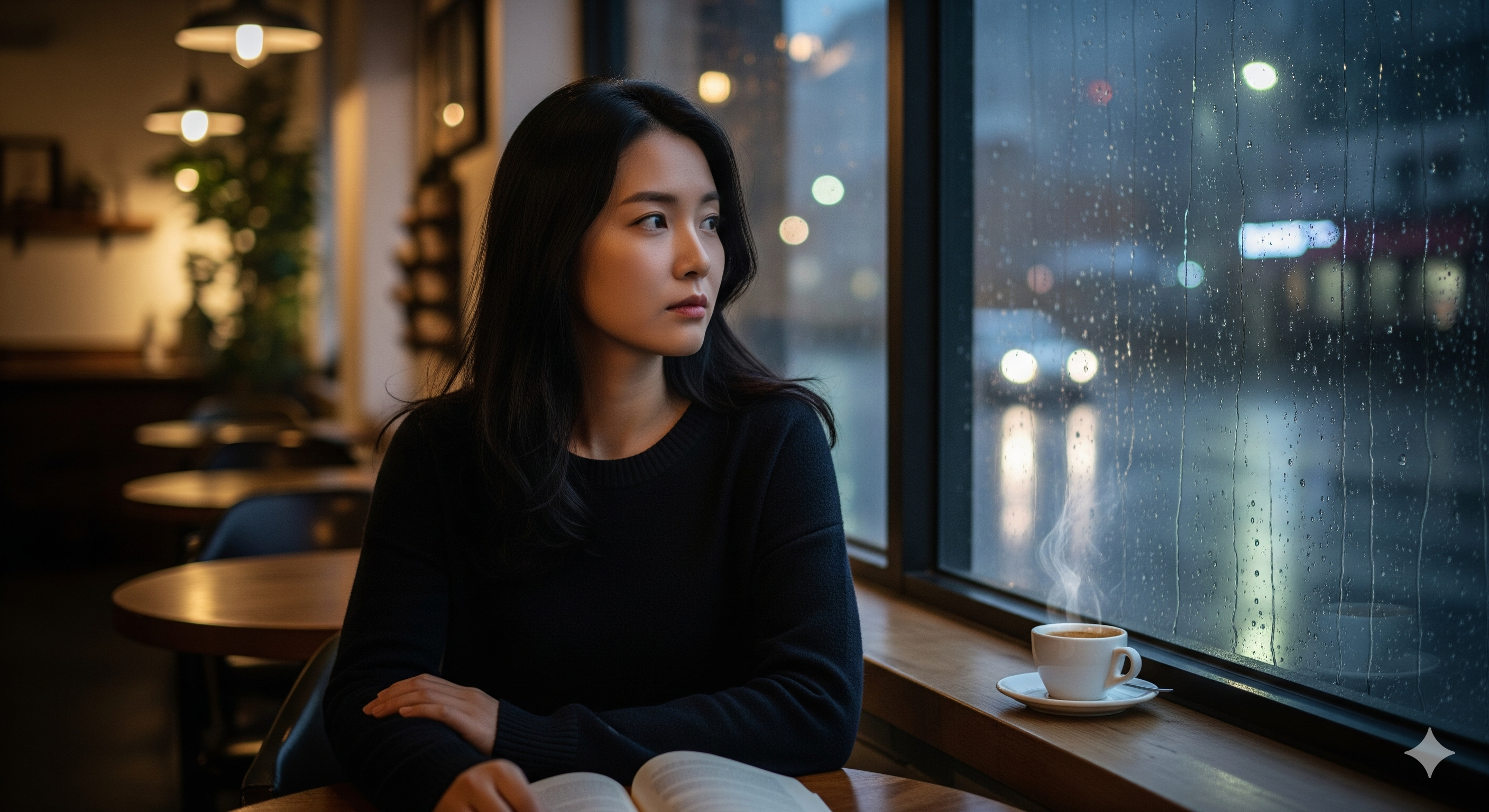 따뜻한 에스프레소 한 잔과 함께 비 오는 창밖을 바라보는 모습이 노래의 분위기를 잘 나타내고 있죠.